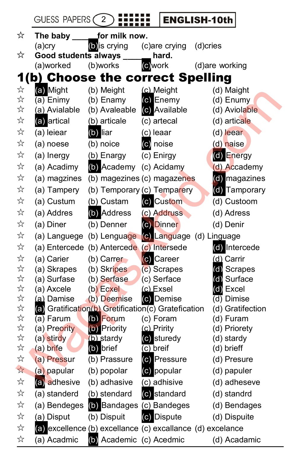 1(b) Choose the correct Spelling