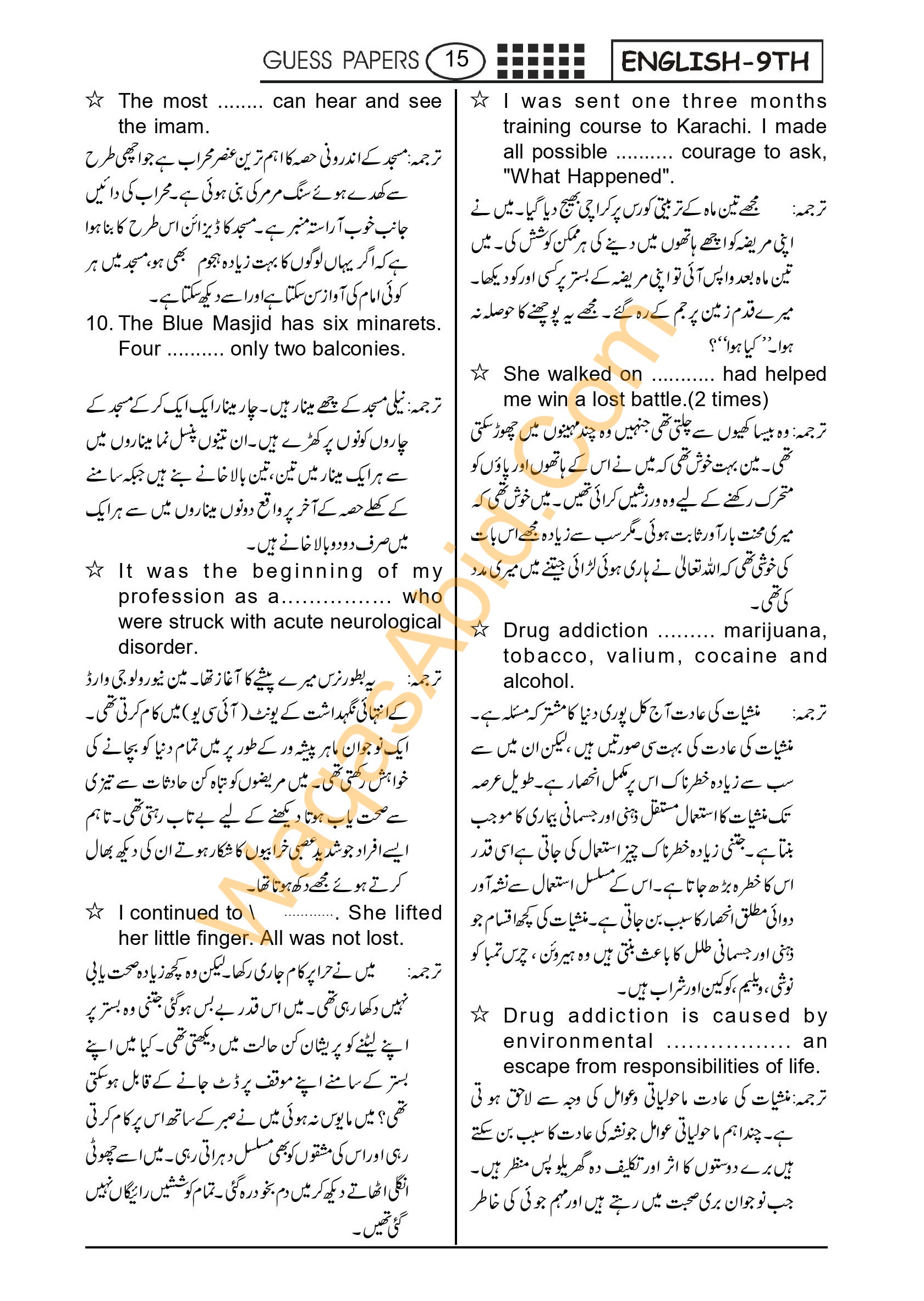 9th Class English Guess Paper 2023 PDF Punjab Boards