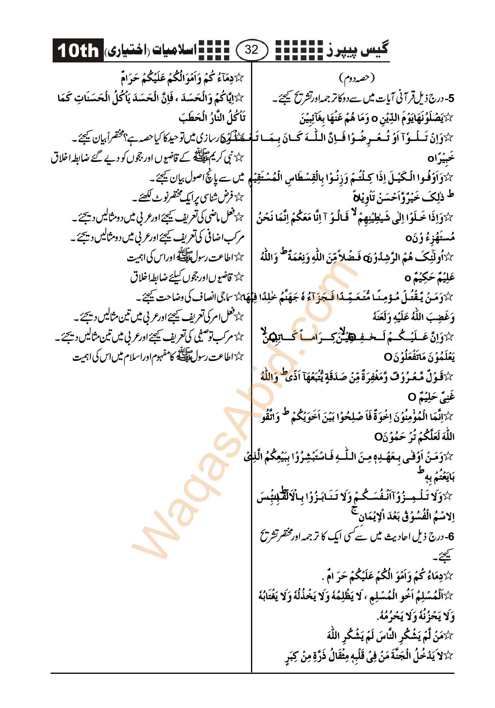 Islamiat Ikhtiari guess paper 2023 - Islamiat elective 10th class guess paper 2023 , 10th class islamiat elective most important questions